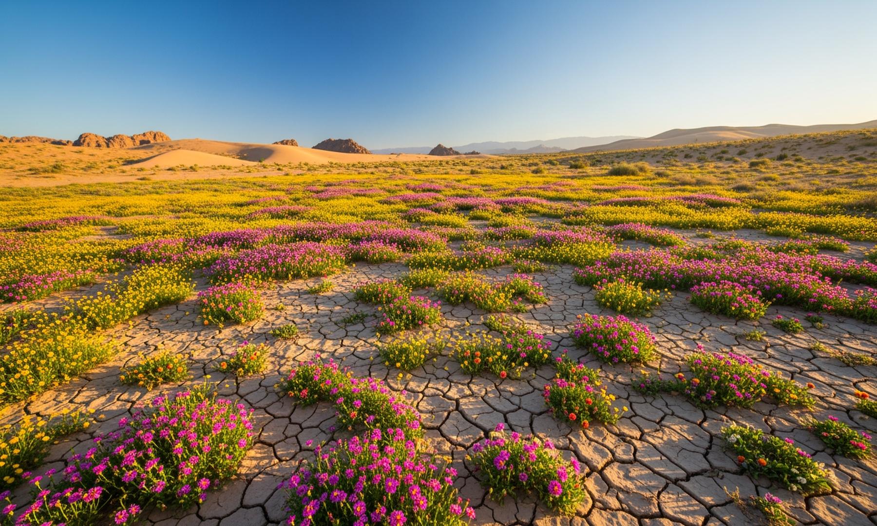 • Heavy rainfall and mild temperatures have created ideal conditions for desert wildflowers, known as ephemerals, to flourish.