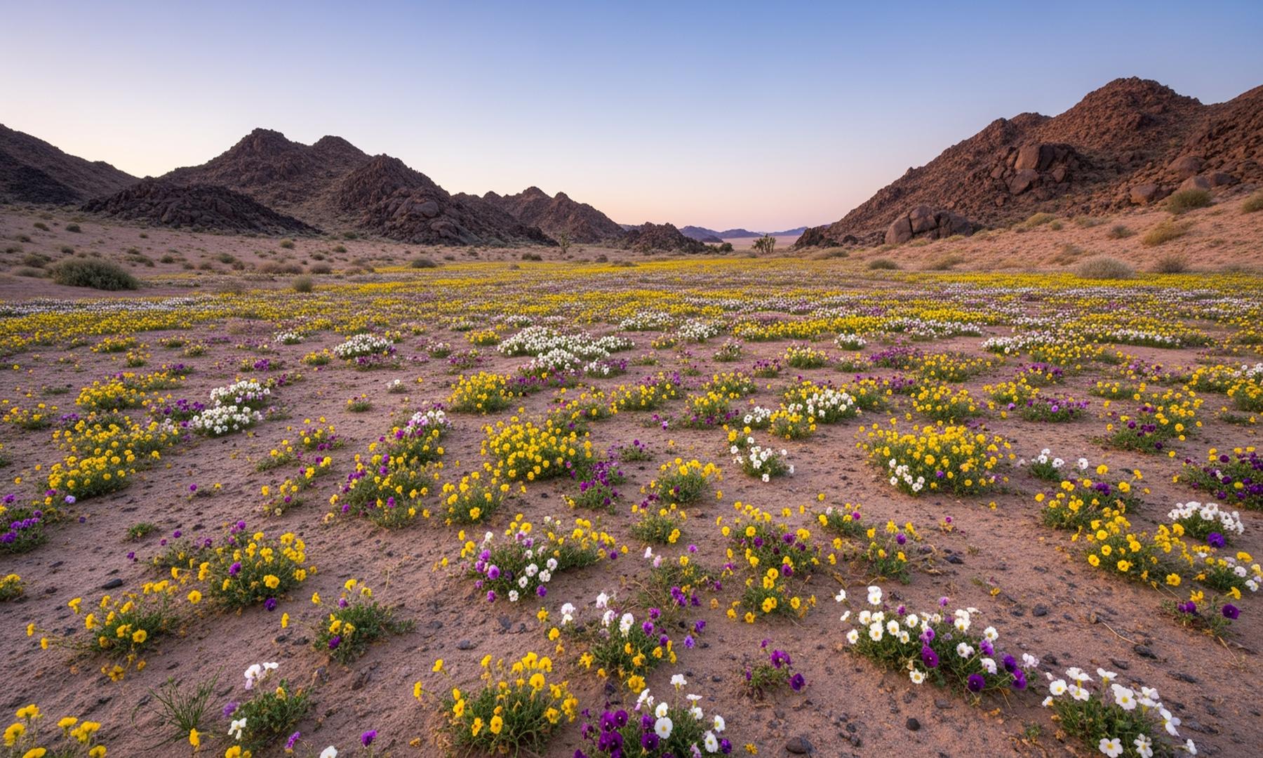 • L'insolita abbondanza di piogge ha trasformato il paesaggio arido in uno spettacolo di colori, attirando impollinatori come farfalle, api e colibrì.