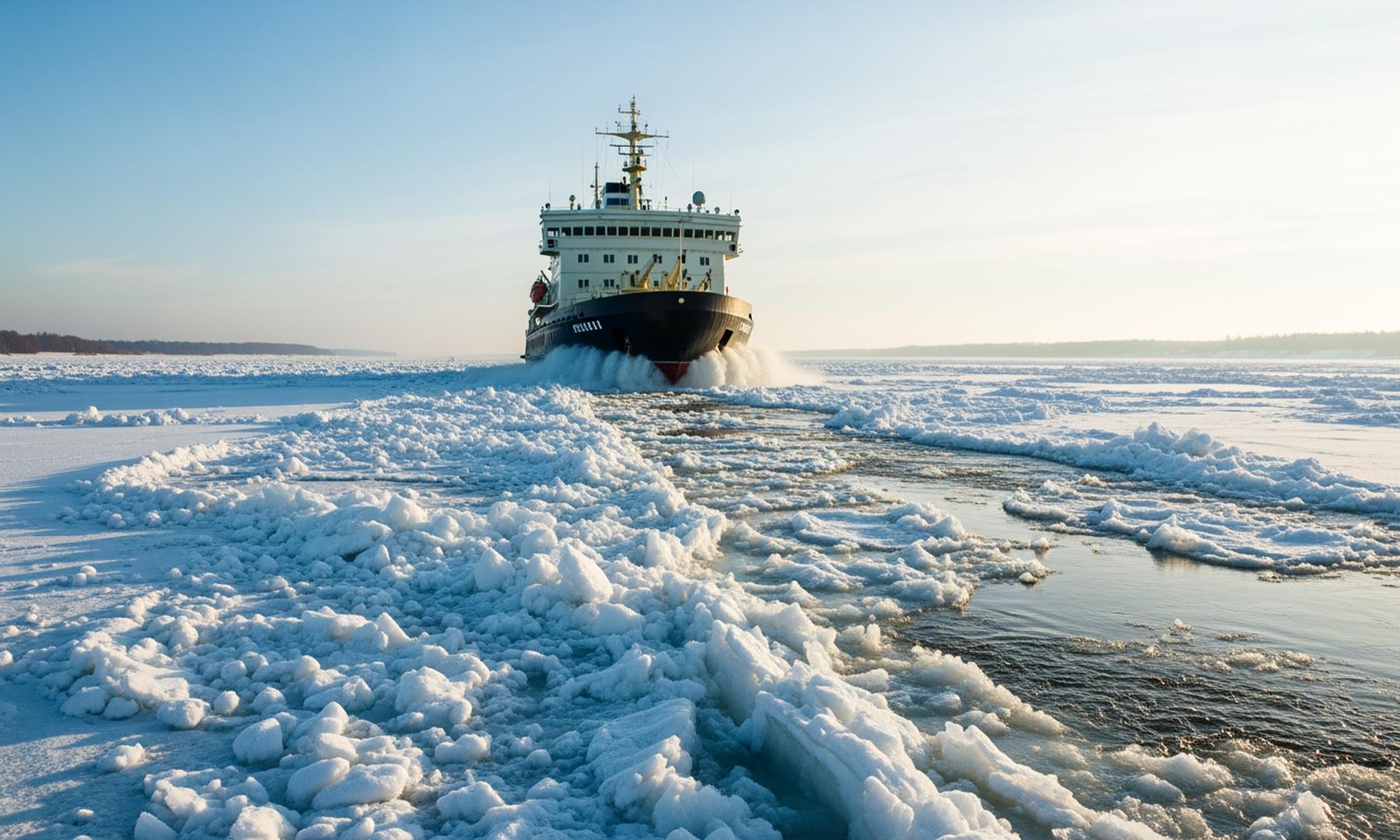 Specialized vessels are used to break through thick ice layers, preventing ice jams and potential flooding.